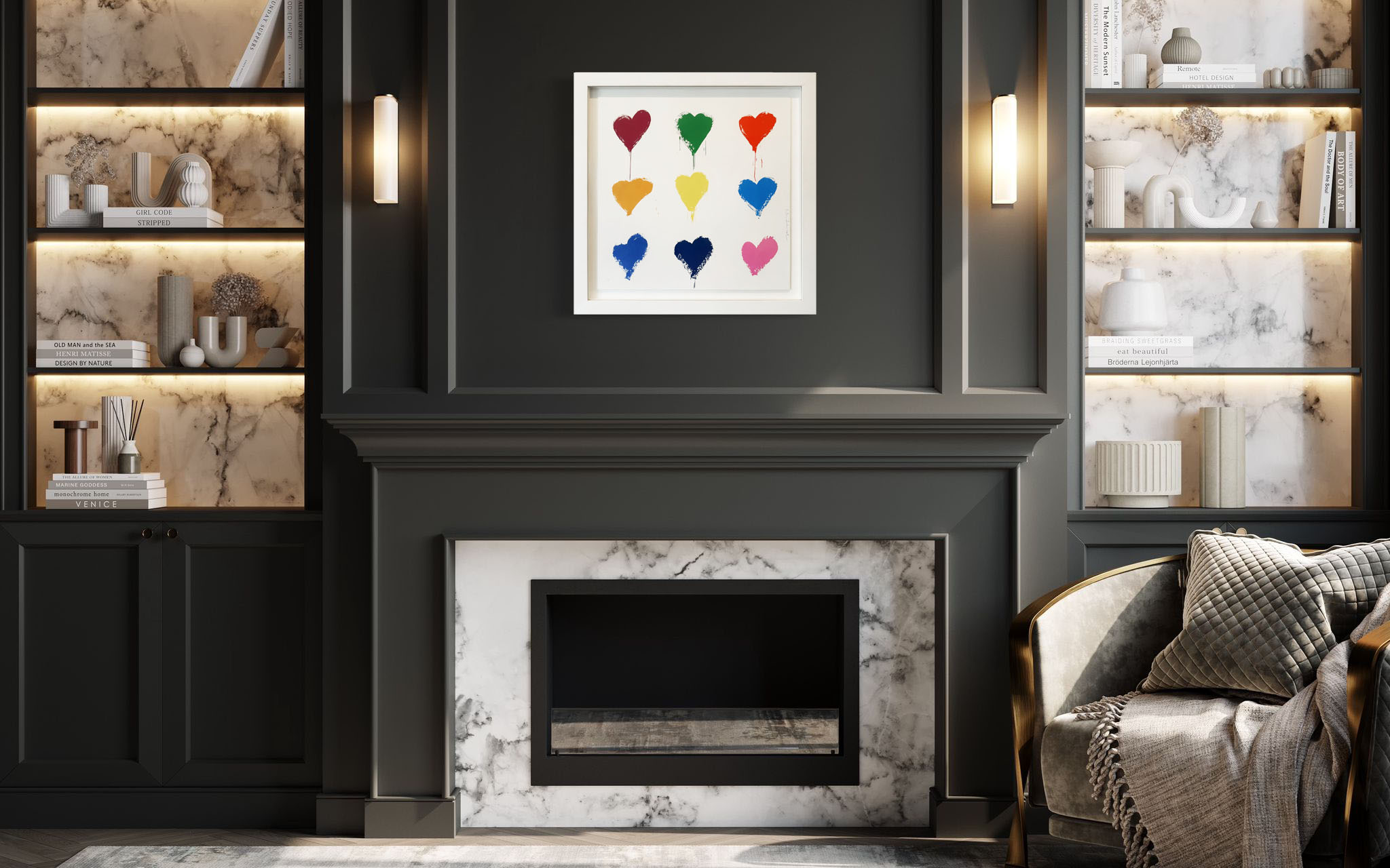 Created in 2021, the work reflects Thierry Guetta’s signature fusion of street art energy and pop iconography. The repetition of the heart symbol underscores his long-standing message of positivity—closely aligned with his “Life Is Beautiful” philosophy—while the Beatles-inspired title cleverly reframes a cultural anthem into a contemporary visual statement. The clean geometry of the grid balances the rawness of the paint application, making the work equally compelling in both modern interiors and serious contemporary collections.