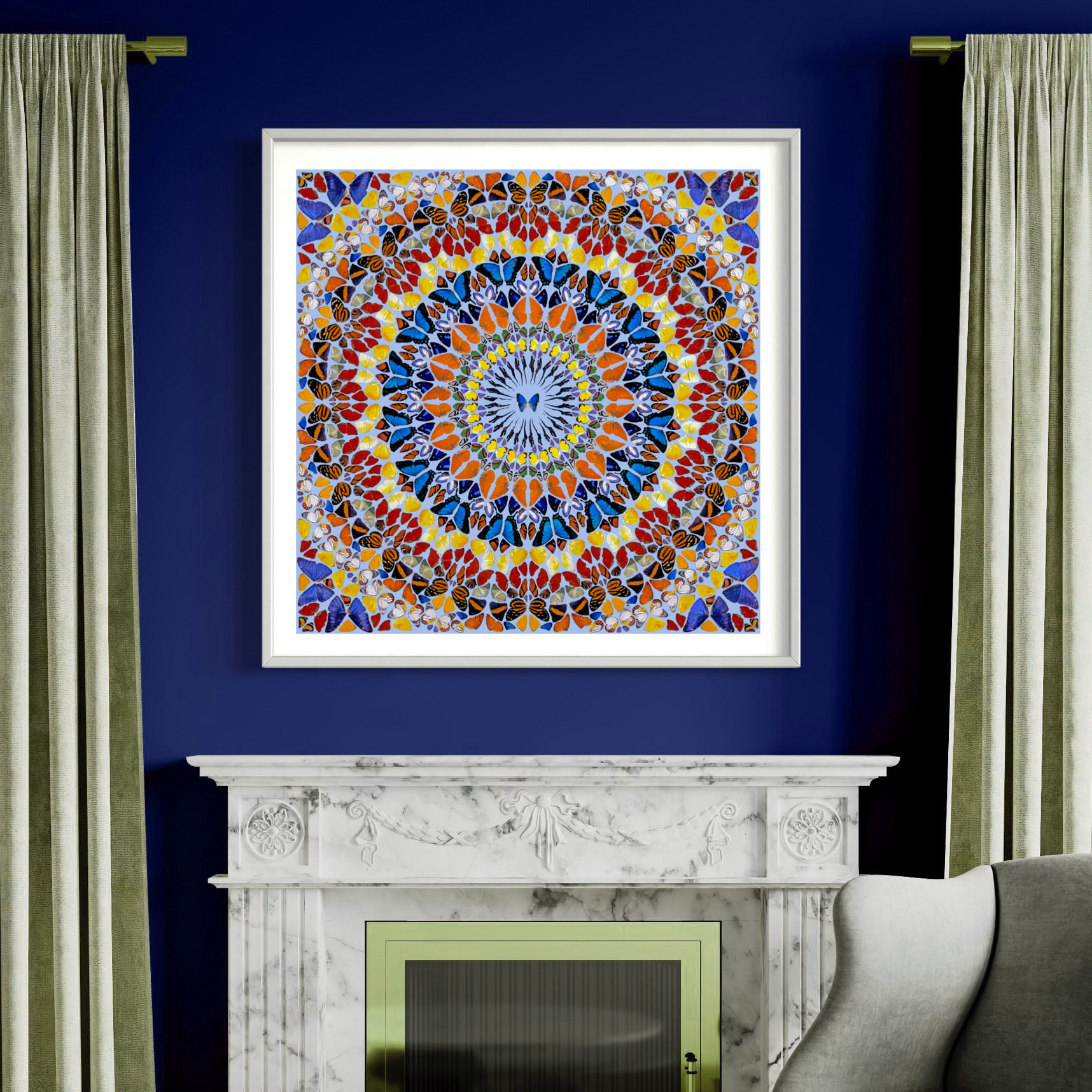 Kindness belongs to Damien Hirst’s celebrated “Butterfly” series, a body of work that has become one of his most recognizable and enduring motifs. The composition radiates with kaleidoscopic symmetry, featuring vibrant butterfly wings meticulously arranged in concentric circles. At once naturalistic and geometric, the piece evokes the sacred geometry of mandalas, suggesting both the fragility of life and the eternal cycles of renewal.