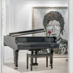 Executed in 2010, shortly after Jackson’s passing, the work carries added historical resonance. Fragmented musical artifacts are reassembled into a unified image, transforming broken records into a metaphor for legacy, reinvention, and cultural immortality.