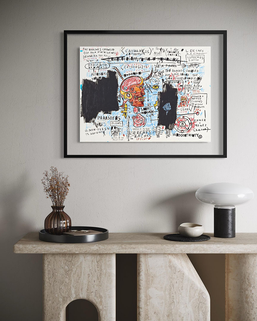 This is not a subtle work—and it isn’t meant to be. Odours of Punt speaks to Basquiat’s ambition during the early 1980s, when his canvases expanded in both size and conceptual reach. As a print, it offers something relatively rare in the market: a museum-scale Basquiat experience that still fits within the print category.