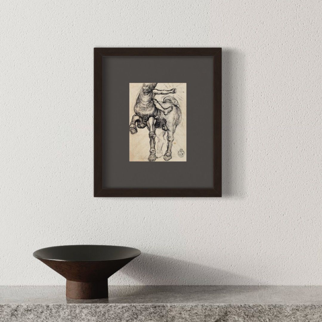 A study for Dalí’s towering painting Santiago el Grande—a work of monumental scale and significance, unveiled at the 1957 World Exhibition. This sketch embodies the early formation of that vision. Holding it is like having a fragment of history itself.