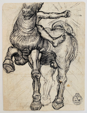 A preparatory drawing for one of Dalí’s most ambitious explorations of the human body as a vessel of cosmic power. Dynamic, muscular, and forward-thrusting, this is Dalí at his most heroic. To own a work like this is to possess part of the genesis of a major artistic concept.