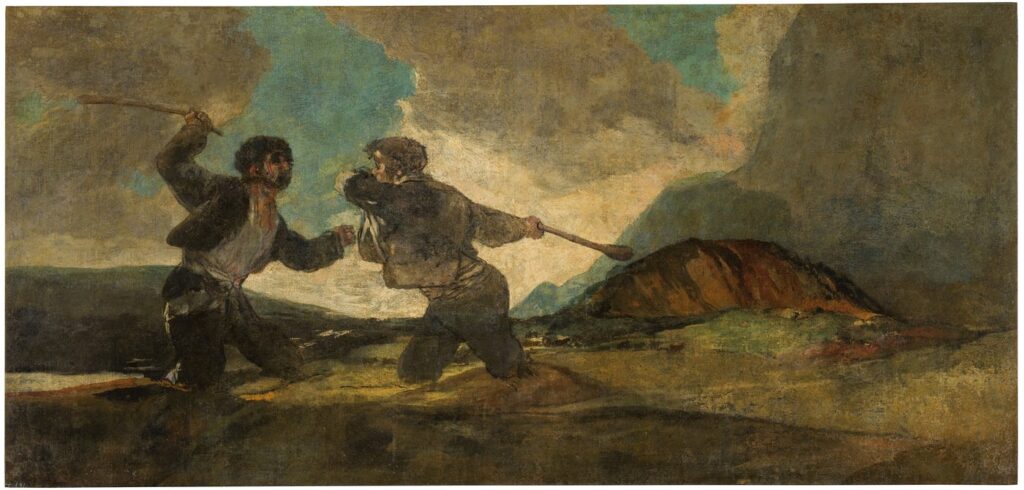 Francisco Goya Fight with Cudgels (Spanish: Duelo a garrotazos- c. 1820–1823) From the Museo del Prado, Madrid